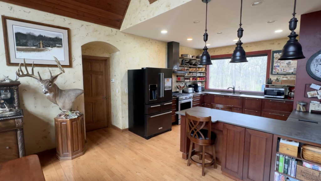The property includes a spacious 60×48 finished garage equipped with both heating and air conditioning, ideal for year-round use. For outdoor enthusiasts, this land offers unparalleled deer hunting with five established food plots and a remarkable trail camera history of giant deer. Turkey populations abound, making this a hunter’s paradise.