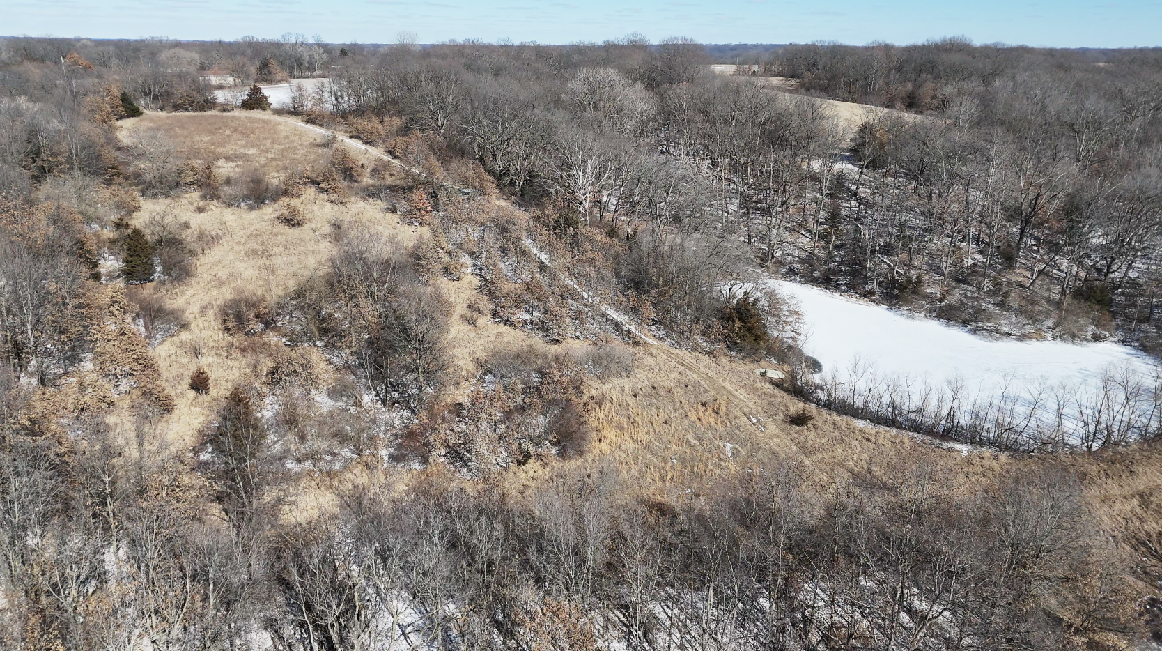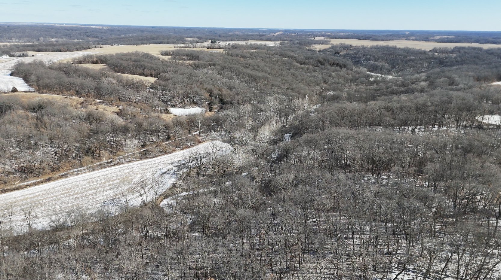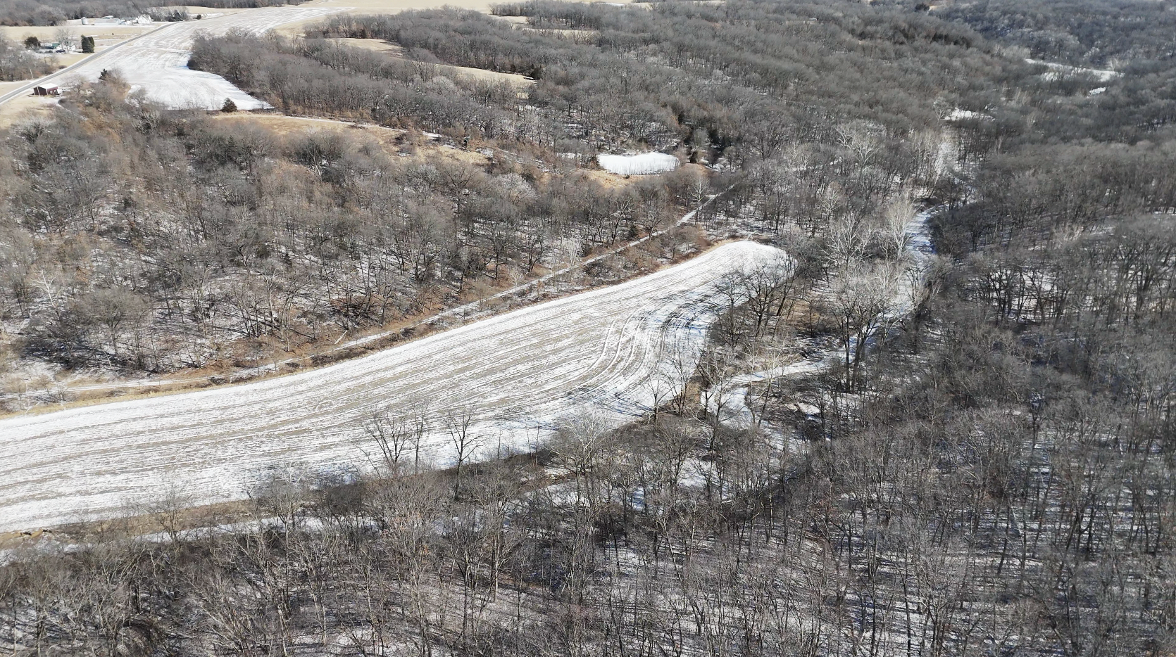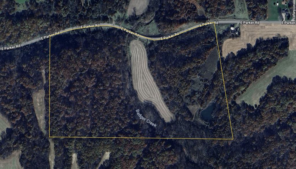 The farm includes 4 acres of tillable ground, perfect for food plots, ensuring a reliable draw for wildlife. An additional 4 acres of southwest-facing hillside presents an ideal opportunity to establish a prairie grass bedding area for enhanced deer habitat. The deep and shallow draws, rolling hardwood timber, and Badger Creek winding through the property create an ideal property layout to produce and hold whitetails. A wildlife pond adds another key feature to this well-balanced hunting setup. The property is in an extremely remote area and is connected to a giant block of timber.