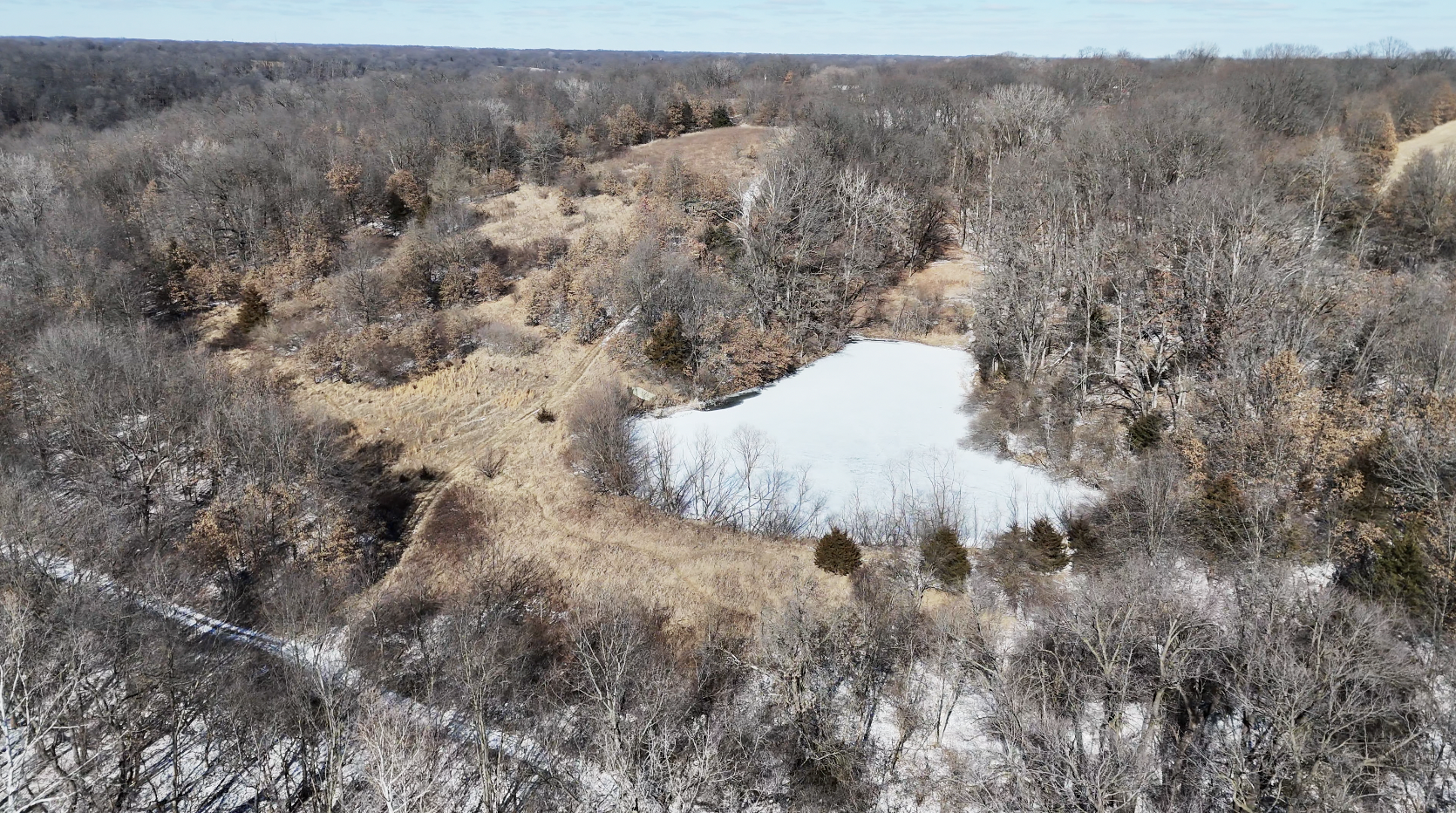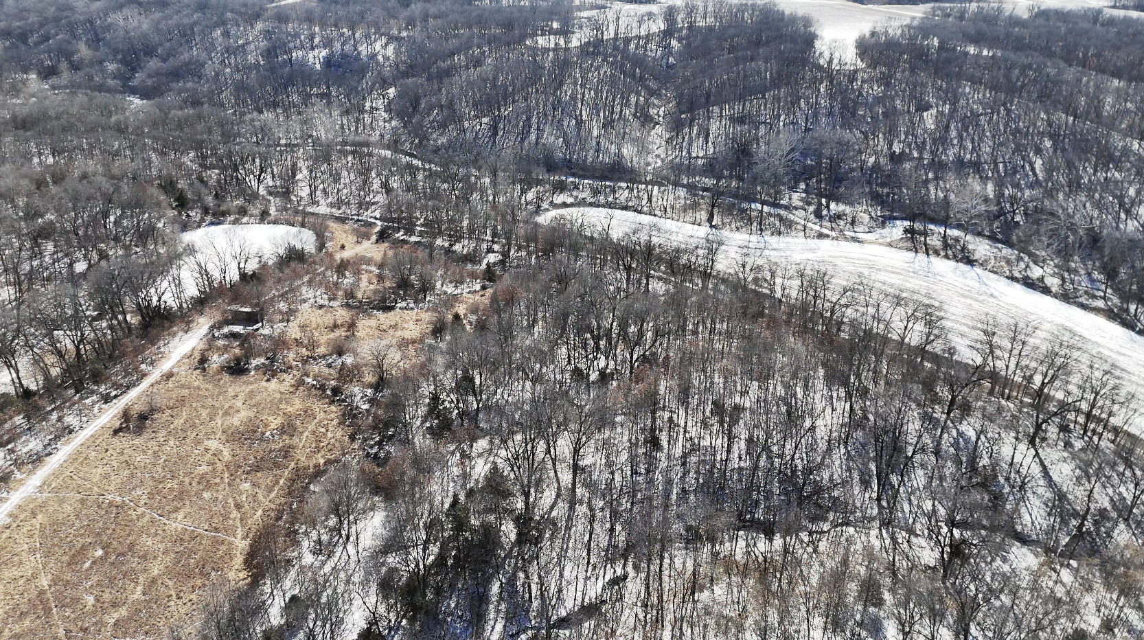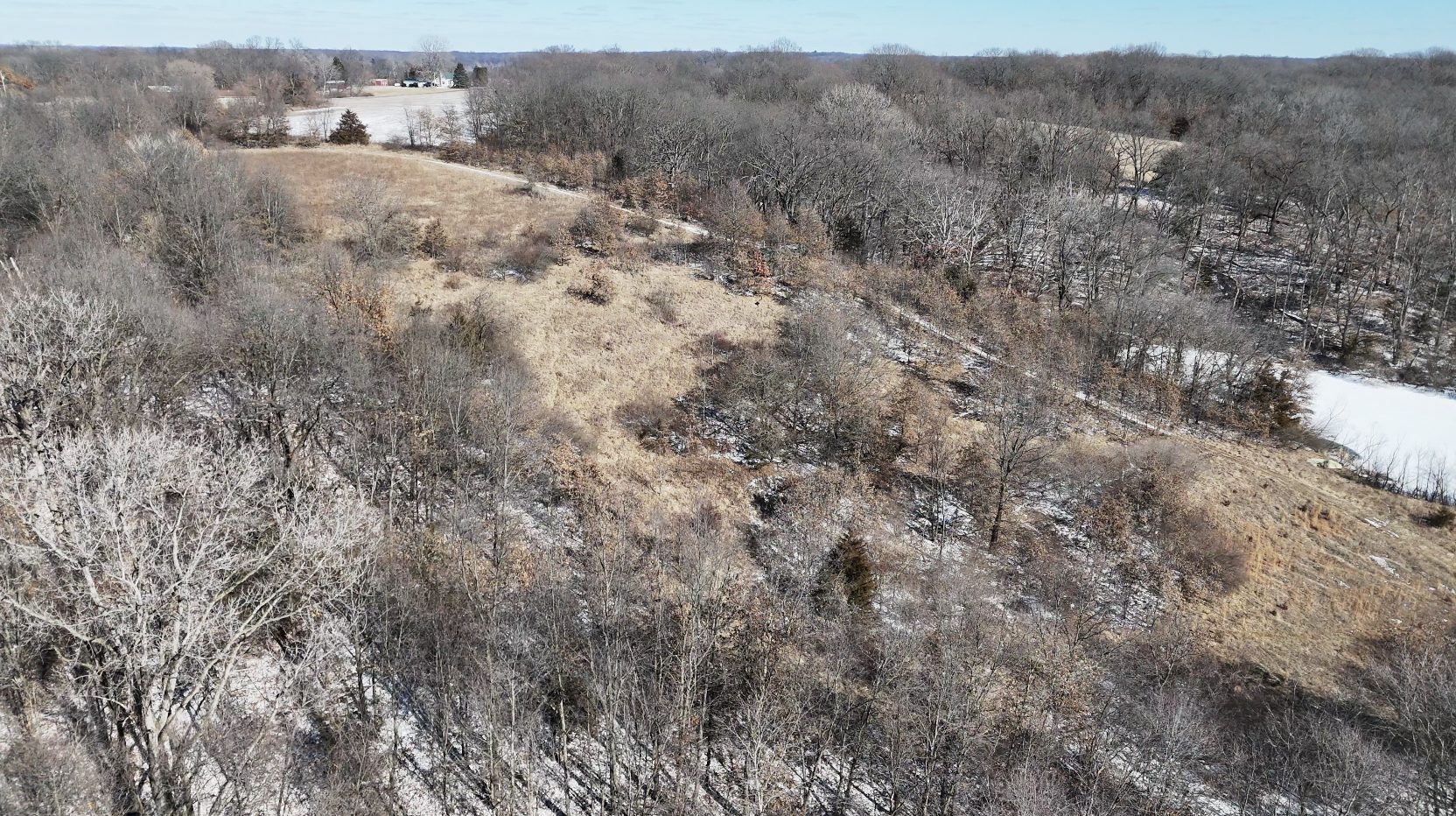 The farm includes 4 acres of tillable ground, perfect for food plots, ensuring a reliable draw for wildlife. An additional 4 acres of southwest-facing hillside presents an ideal opportunity to establish a prairie grass bedding area for enhanced deer habitat. The deep and shallow draws, rolling hardwood timber, and Badger Creek winding through the property create an ideal property layout to produce and hold whitetails. A wildlife pond adds another key feature to this well-balanced hunting setup. The property is in an extremely remote area and is connected to a giant block of timber.