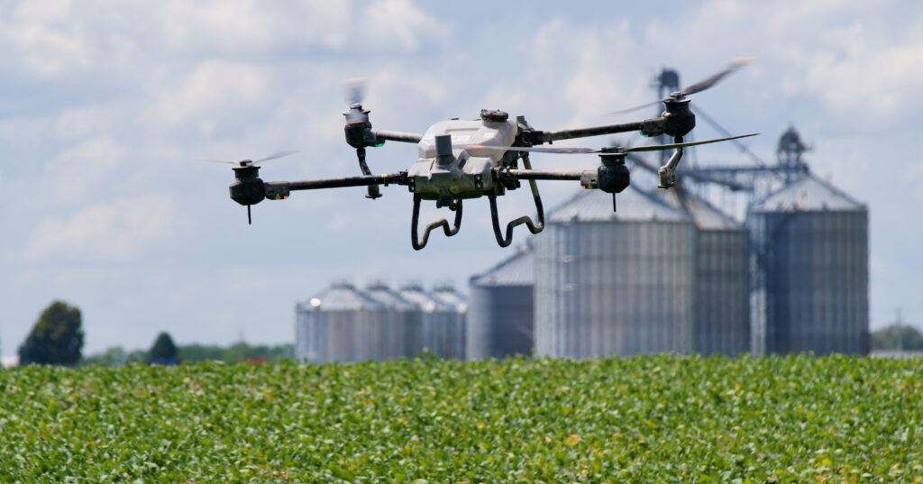The advantages to our clients who own row crops, both investors and farmers, are clear. Drones provide a more effective and efficient way to do many agricultural practices, including chemical spraying and cover crop seeding. In terms of chemical spraying, drones have several essential advantages when compared to traditional spraying methods. When compared to tractors, drones offer more precision, less overlap, zero ground compaction, and less carbon emissions. When compared to helicopters or airplanes, drones offer greater precision, less drift, less overlap, and less carbon emissions. The bottom line is that drones provide greater precision while limiting the stress on both the current and future crops, which increases yields.